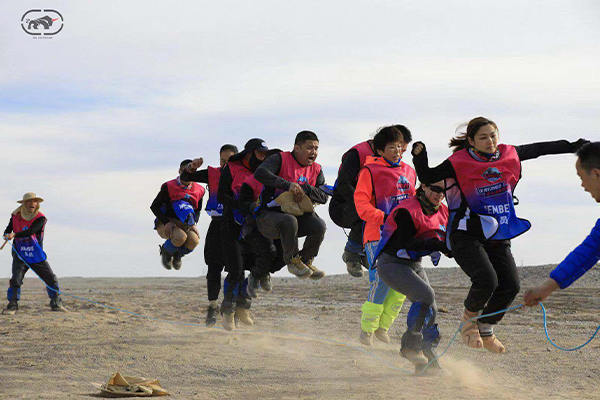 第二天的最后10公里,我們到了一個以為是補給站的帳篷,結果沒有補給而是當天最后一個坎----集體跳繩,要通過才可以繼續走!看看英雄的風采吧,照片中的胖子十一戈,你怎么是跳得那么高呢?